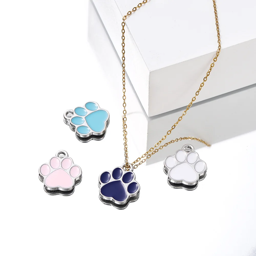 2pcs Hot Selling DIY Pendant Material 2mm Hole Bear Paw Pendant Alloy Drip Oil Hanging Plated Color Preserving Pendant Wholesale